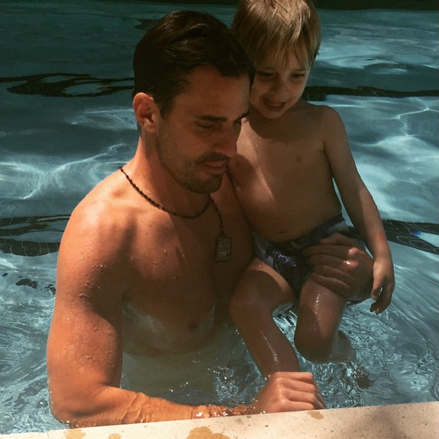 In the adorable snapshot, Bill holds up son Duke as the two guys play together in a swimming pool.