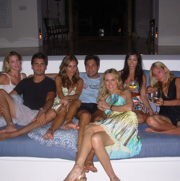 In the snapshot, Kardashian and Disick pose casually amongst a large croup of friends, including Joe Francis, who introduced the two back in 2007.